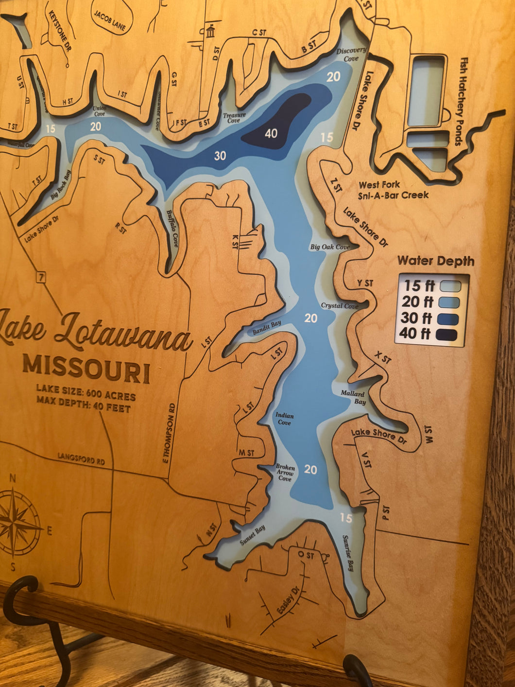 Discover the allure of Lake Lotowana with our premium 3D Lake Map, meticulously crafted at approximately 20.25 x 22.5 inches in size. This stunning piece showcases laser-engraved roads, depth markers, and points of interest, all framed in handmade hardwood for a touch of elegance. Elevate your space with this unique blend of artistry! Stay tuned for more lake maps coming soon.